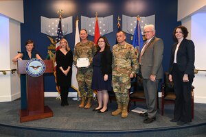 Misawa Air Base, Japan, received the Air Force installation Department of Defense Suicide Prevention Month Outreach Recognition Award in a ceremony at the Pentagon Hall of Heroes May 15.It’s an award no one really wants to claim. Accepting on behalf of his team’s efforts, 35th Fighter Wing Commander